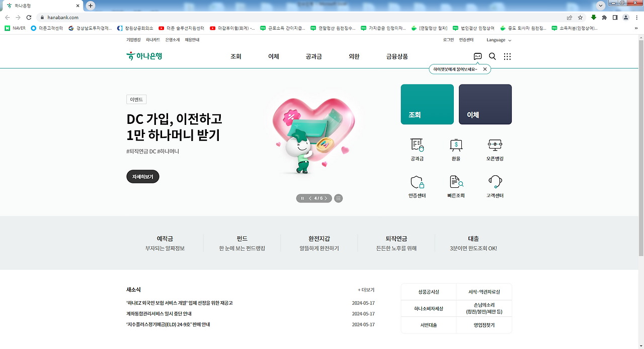 하나은행에서 발급받은 공인인증서라 이렇게 하나은행 사이트가 새창에서 열렸다.