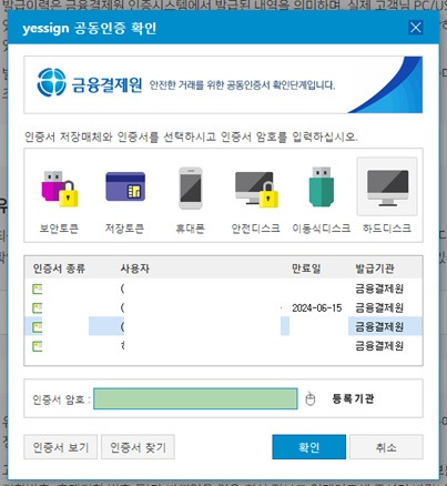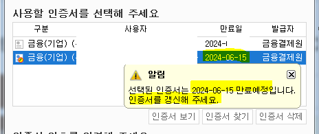 선택하신 인증서는 2024-06-15(만료일) 만료 예정입니다.