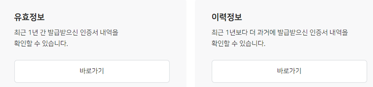 4. 스크롤 내려서 아래에 있는 유효정보 바로가기 or 이력정보 바로가기 클릭