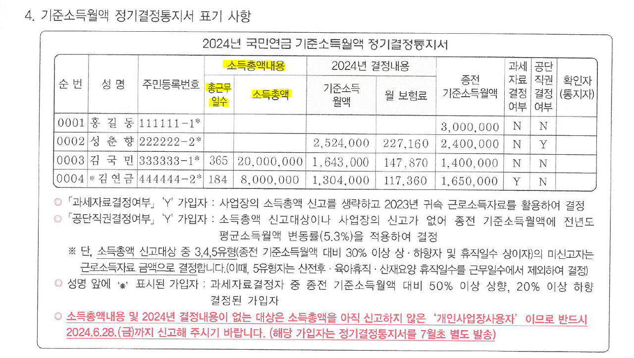 덤으로 기준소득월액 정기결정 통지 안내 착오 신고 사례와 국민연금 꼭 알아두기 체크하기