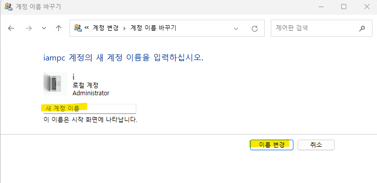 PC 계정 이름 변경 방법