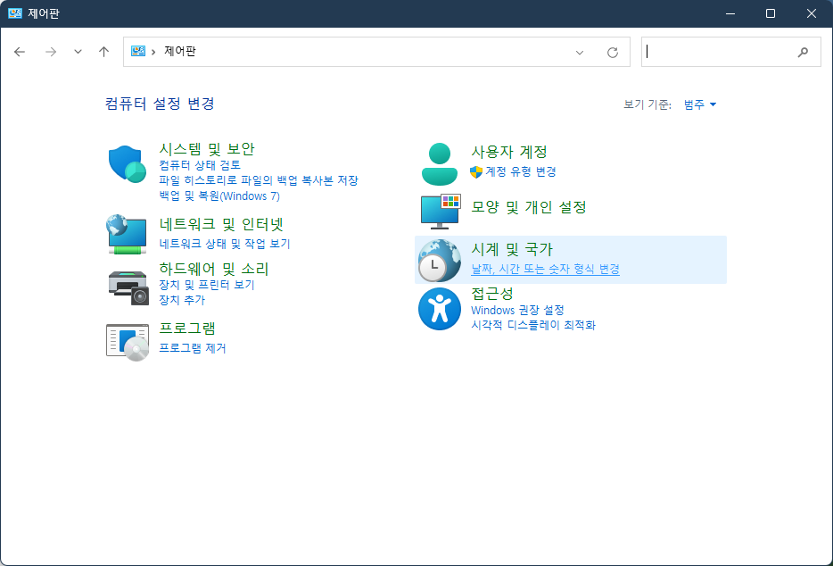 1. 제어판 > 사용자 계정 > 계정 유형 변경