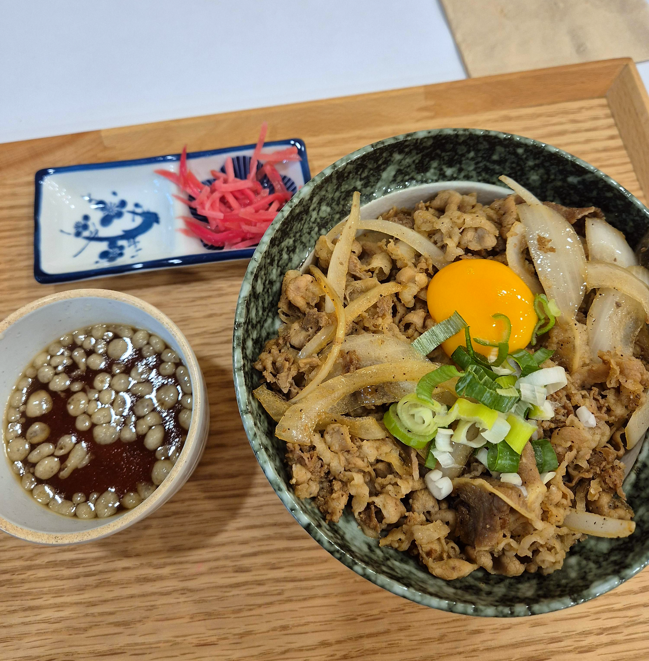 규동이랑 국물이랑 같이나오는데 절임은 따로 셀프코너에서 가져와야한다. 참고로 물도 셀프!
