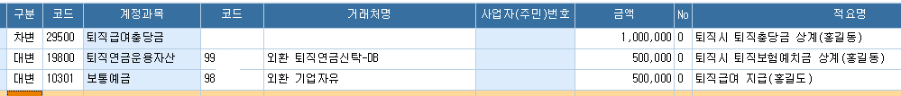 퇴직급여충당금 XXX / 퇴직연금운용자산 XXX 보통예금 XXX